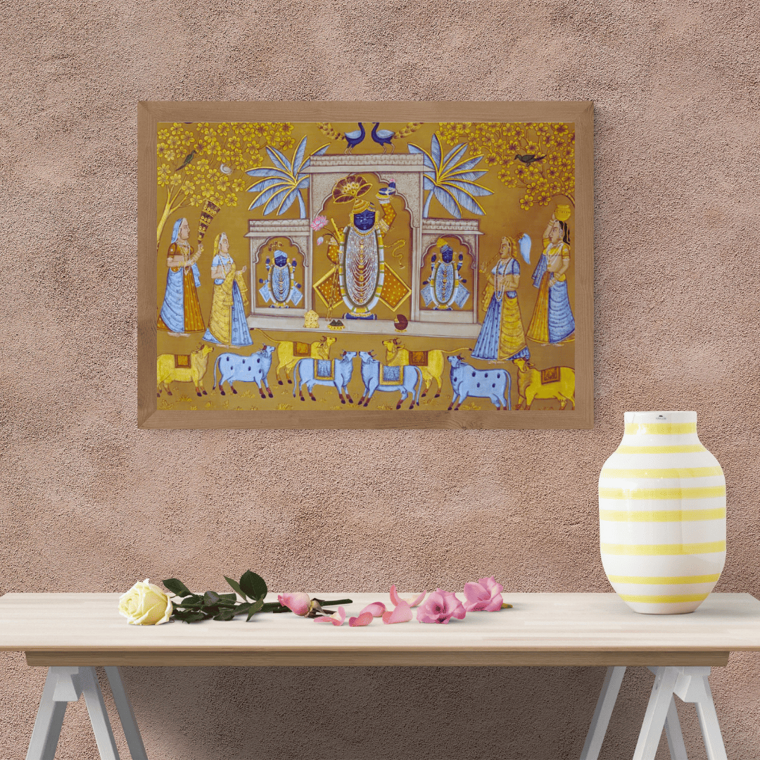 If you are looking for a traditional artwork that speaks to your soul, this Pichwai painting will truly connect with your devotion and aesthetic.